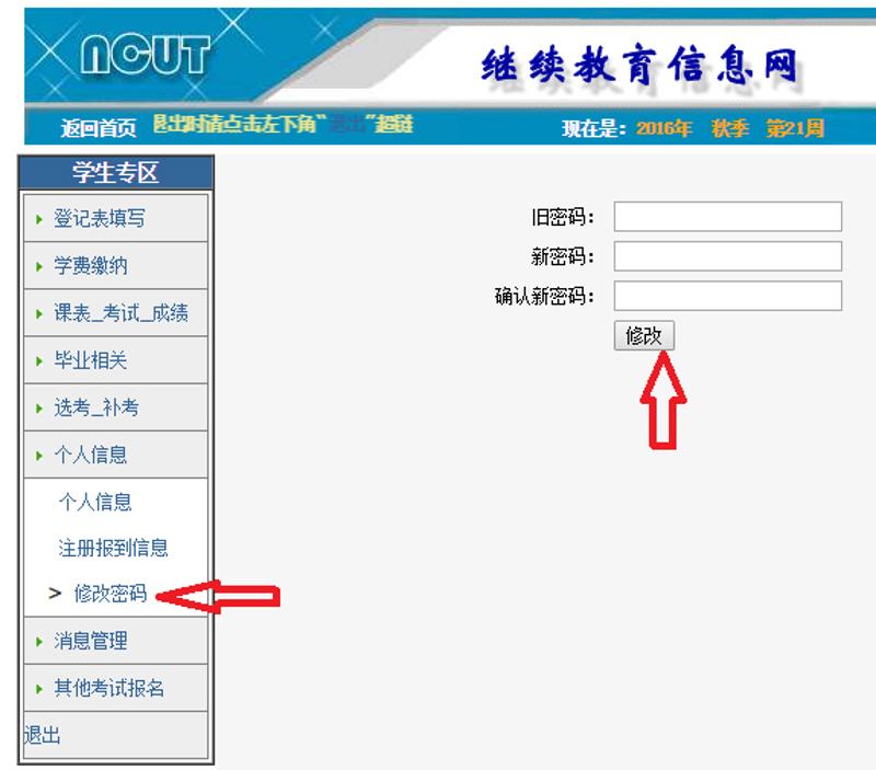 一、特别提示:继续教育信息网(http://jjxx.ncut.edu.cn/)是beat365官网教学综合服务平台,登陆个人账号,可查询在校期间教学通知、学期课表、考试安排、课程成绩、注册缴费、学籍变动、学业审核等各种信息。请大家登陆后首先修改密码,并妥善保管!