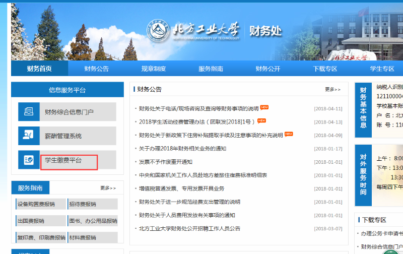 (2)登录beat365官方网站收费服务平台(http://sites.ncut.edu.cn/bfgycwc/),进入学生缴费界面。
