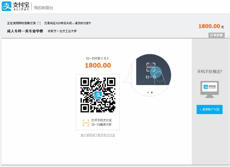 方式二:登录账户付款:点击右边登录账户付款,出现如下界面