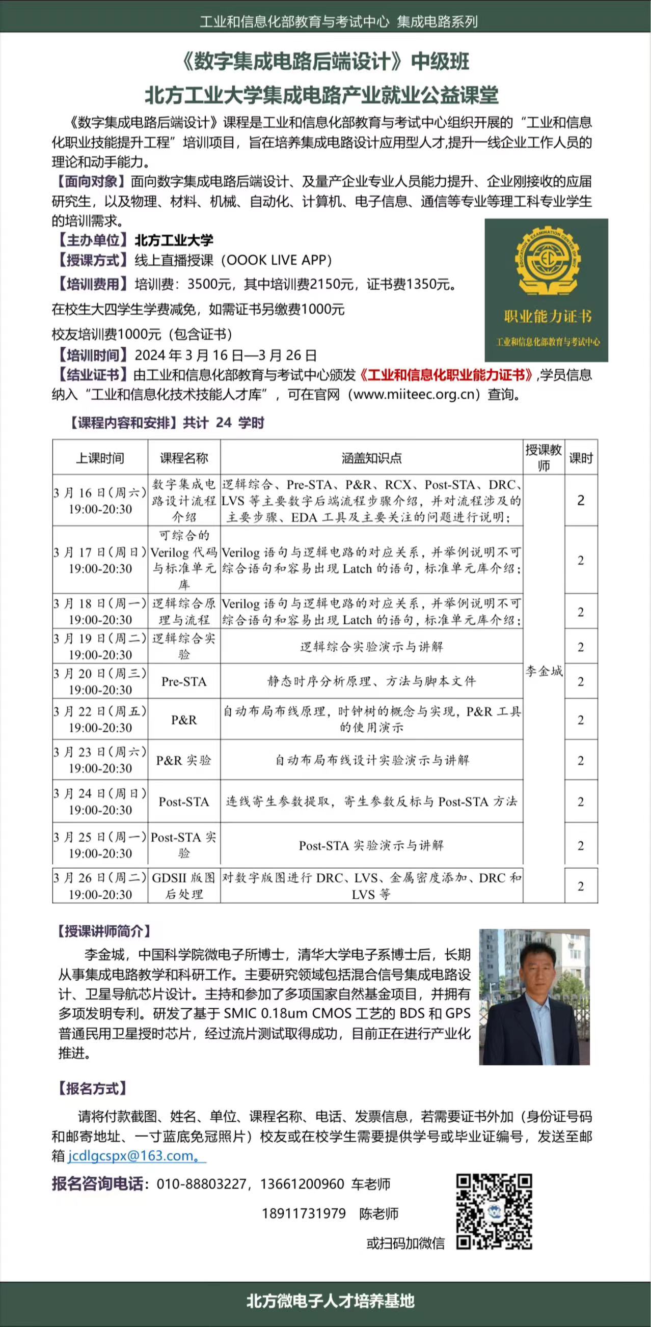《集成电路先进制造工艺工程师》24年3月中级班招生简章