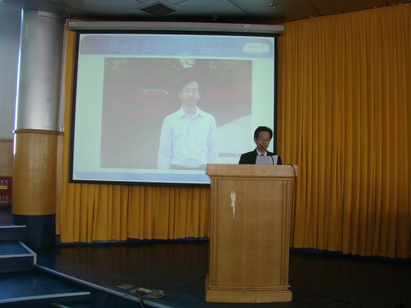 经济管理学院郑强国博士代表全体教师讲话。他希望全体新生能够好好把握这来之不易的深造机会,充分发挥自己的聪明才智,努力克服工学矛盾,刻苦学习钻研,做到“勤思、善学、好问”,不唯一纸文凭而学,努力提高自己的科学文化素质和全面综合能力,为将来能更好地服务社会打好坚实的基础。