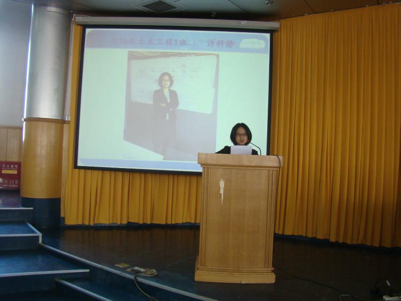土木16-1班许科静同学代表新生发言,表示一定会处理好工作和学习的关系,单位和校园的关系,克服困难,坚持学习,珍惜这来之不易的宝贵机会,通过学习使自己的知识和技能获得质的飞跃。
