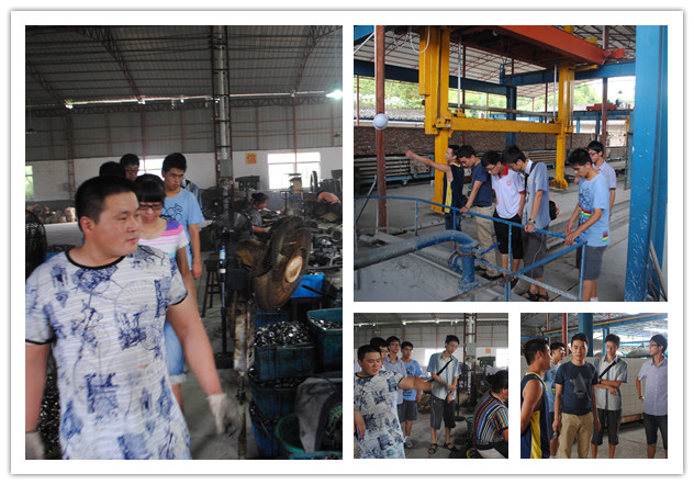 队伍参观的第二站是竹舟村的一家五金零件加工厂。在查田有一句话:天下有车的地方,就有查丰五金人。一句豪言宣告了一个乡镇几代人睥睨天下,不甘平庸的志气,更展现了五金行业之于查田的重要。老的工厂没有新型产业的那种整洁与超前感,却透着一股浓浓的人情味:场子里的老大叔和老大娘带着安详的笑容一边摆弄着手里的活计,一边操着一口方言拉着家常,仿佛在田里耕作一般的轻松自如,让人不得不相信“五金”真的已经成了查田人生命中不可或缺的一部分。多少年来,汽配行业或许没有给这里带来太多的新鲜血液,但的确充实了这并不富裕的乡村。