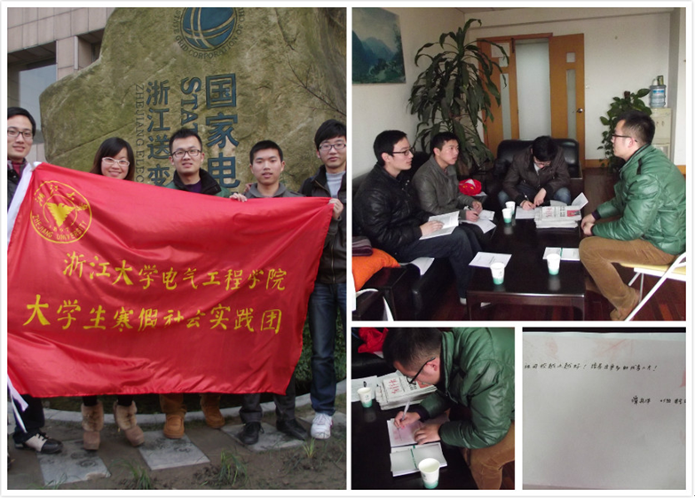 1月23日下午,夏群峰小组五位成员来到了浙江省送变电工程公司和浙江省电力公司,对谭舟洋、王超两位师兄进行采访。两位师兄耐心细致的解答和工作经验的分享让小组成员对改革后的国家电网公司在工作、人员安排、待遇等方面有了更多直观而深刻的认识。最后,小组成员热情地邀请师兄题写对母校的祝福并一同合影留念。