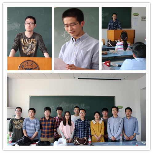 接下来,今年毕业的学长兴胜利上台向大家阐述了他对于“中国梦”的理解,结合自身的研究生科研生活,同大家分享了他在科研以及就业上的经验。在分享当中,他着重强调了在日常的科研生活中需要脚踏实地,一步一个脚印,勇于探索,用心面对所研究的领域,科研过程中所培养的实力才是就业过程中最有力的敲门砖。同学们不时在纸上记录学长分享的要点,认真聆听学长的经验介绍。